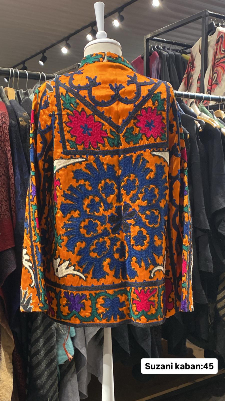 ÜRÜNLERİMİZ İPEK SUZANİDİR. ÜRÜNÜMÜZ ÖLÇÜLERİ OMUZ=40 BOY=83 KOL=59 EBATINDADIR. ÜRÜNÜMÜZ ÇİFT CEPLİDİR.ÜRÜNÜMÜZ ASTARLIDIR.EL YAPIMI ESKİ KUMAŞLARDAN ÜRETİLMİŞTİR ÜRÜNÜMÜZ KİŞİYE ÖZEL TASARIMDIR.