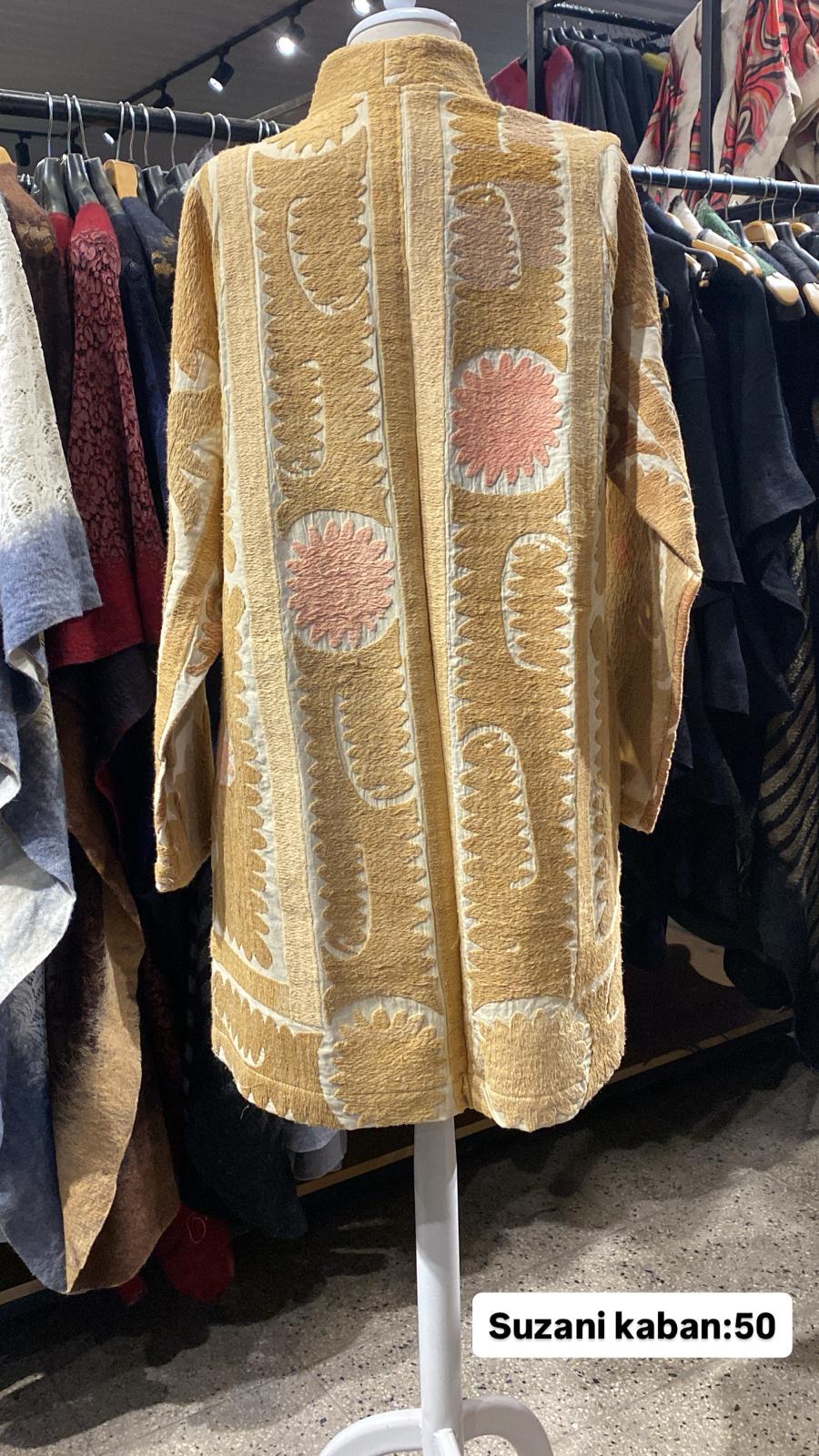 ÜRÜNLERİMİZ İPEK SUZANİDİR. ÜRÜNÜMÜZ ÖLÇÜLERİ OMUZ=40 BOY=83 KOL=59 EBATINDADIR. ÜRÜNÜMÜZ ÇİFT CEPLİDİR.ÜRÜNÜMÜZ ASTARLIDIR.EL YAPIMI ESKİ KUMAŞLARDAN ÜRETİLMİŞTİR ÜRÜNÜMÜZ KİŞİYE ÖZEL TASARIMDIR.
