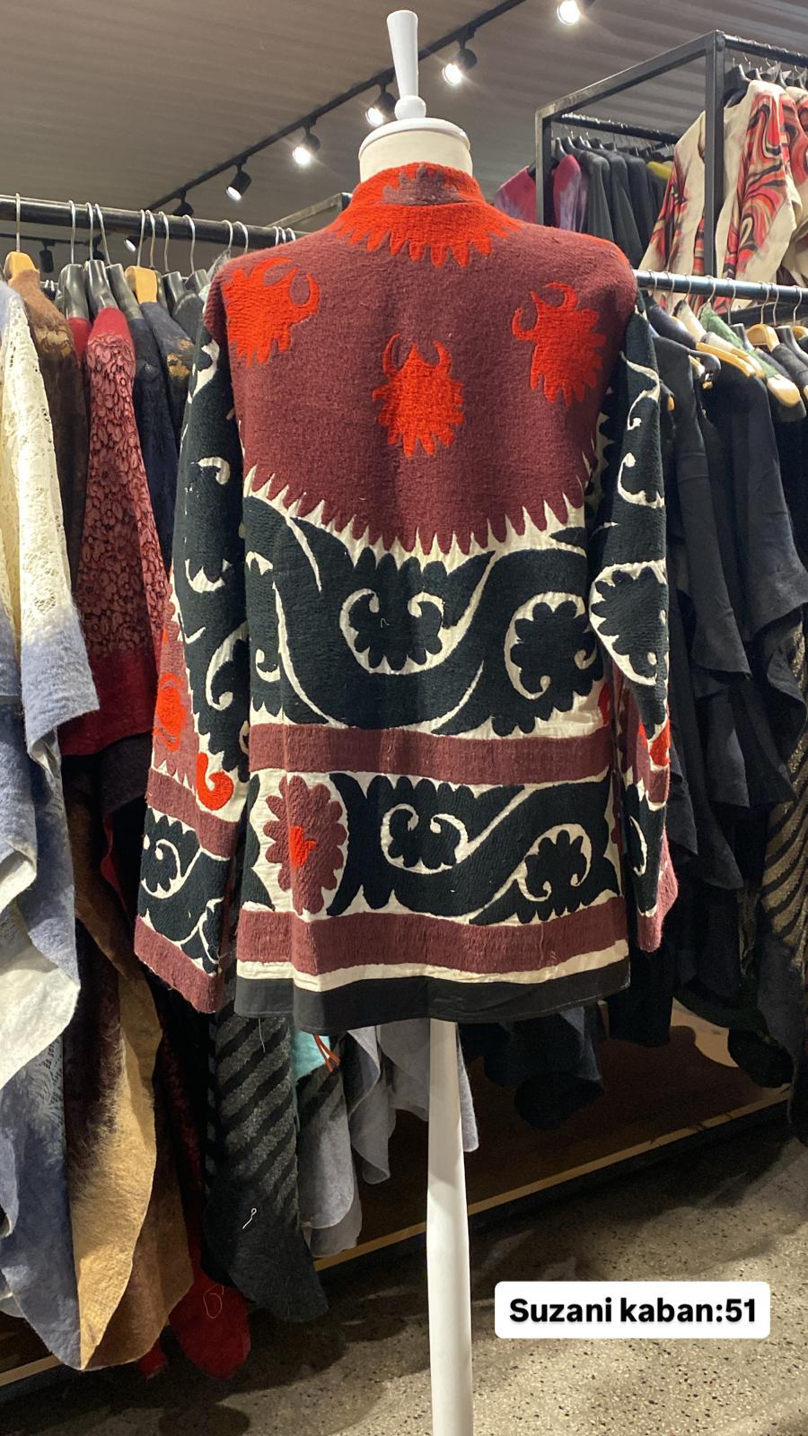 ÜRÜNLERİMİZ İPEK SUZANİDİR. ÜRÜNÜMÜZ ÖLÇÜLERİ OMUZ=42 BOY=64 KOL=60 EBATINDADIR.ÜRÜNÜMÜZ ASTARLIDIR.ÜRÜNÜMÜZ ÇİFT CEPLİDİR. EL YAPIMI ESKİ KUMAŞLARDAN ÜRETİLMİŞTİR ÜRÜNÜMÜZ KİŞİYE ÖZEL TASARIMDIR.