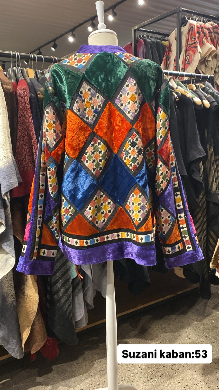 ÜRÜNLERİMİZ İPEK SUZANİDİR. ÜRÜNÜMÜZ ÖLÇÜLERİ OMUZ=42 BOY=64 KOL=60 EBATINDADIR.ÜRÜNÜMÜZ ASTARLIDIR.ÜRÜNÜMÜZ ÇİFT CEPLİDİR. EL YAPIMI ESKİ KUMAŞLARDAN ÜRETİLMİŞTİR ÜRÜNÜMÜZ KİŞİYE ÖZEL TASARIMDIR.