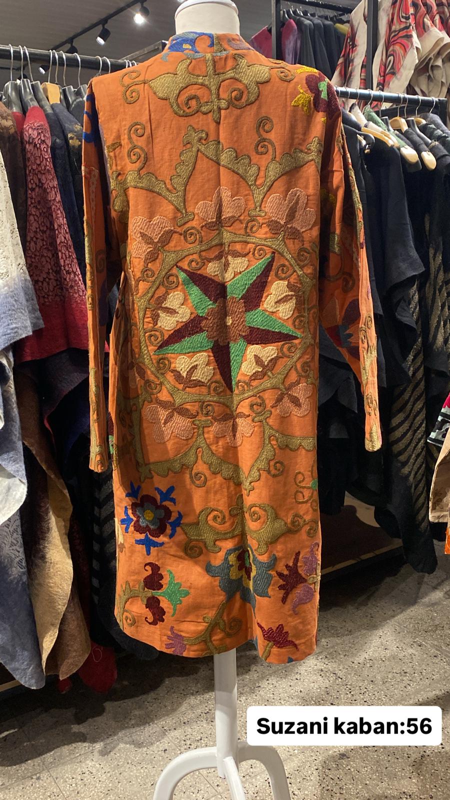 ÜRÜNLERİMİZ İPEK SUZANİDİR. ÜRÜNÜMÜZ ÖLÇÜLERİ OMUZ=40 BOY=83 KOL=59 EBATINDADIR. ÜRÜNÜMÜZ ÇİFT CEPLİDİR.ÜRÜNÜMÜZ ASTARLIDIR.EL YAPIMI ESKİ KUMAŞLARDAN ÜRETİLMİŞTİR ÜRÜNÜMÜZ KİŞİYE ÖZEL TASARIMDIR.