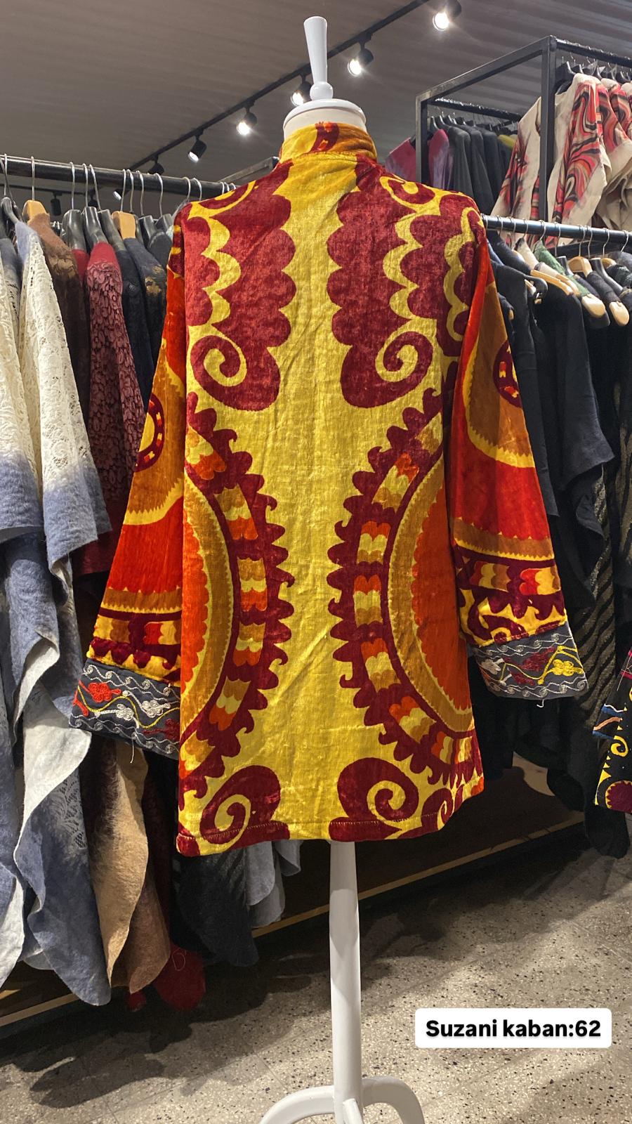 ÜRÜNLERİMİZ İPEK SUZANİDİR. ÜRÜNÜMÜZ ÖLÇÜLERİ OMUZ=42 BOY=64 KOL=60 EBATINDADIR.ÜRÜNÜMÜZ ASTARLIDIR.ÜRÜNÜMÜZ ÇİFT CEPLİDİR. EL YAPIMI ESKİ KUMAŞLARDAN ÜRETİLMİŞTİR ÜRÜNÜMÜZ KİŞİYE ÖZEL TASARIMDIR.