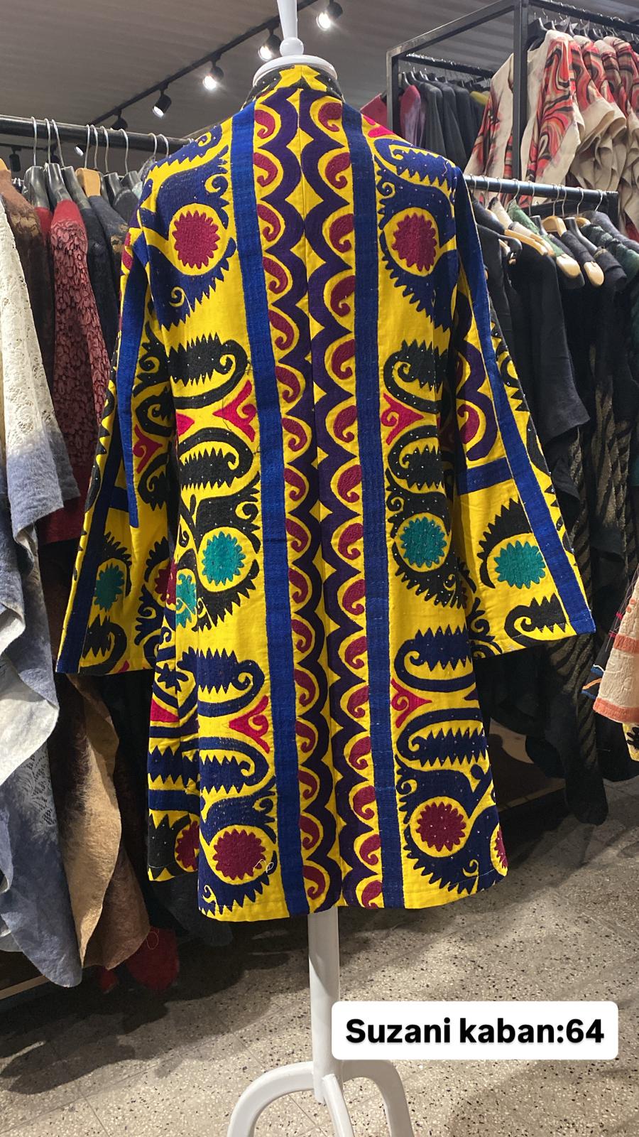 ÜRÜNLERİMİZ İPEK SUZANİDİR. ÜRÜNÜMÜZ ÖLÇÜLERİ OMUZ=40 BOY=83 KOL=59 EBATINDADIR. ÜRÜNÜMÜZ ÇİFT CEPLİDİR.ÜRÜNÜMÜZ ASTARLIDIR.EL YAPIMI ESKİ KUMAŞLARDAN ÜRETİLMİŞTİR ÜRÜNÜMÜZ KİŞİYE ÖZEL TASARIMDIR.
