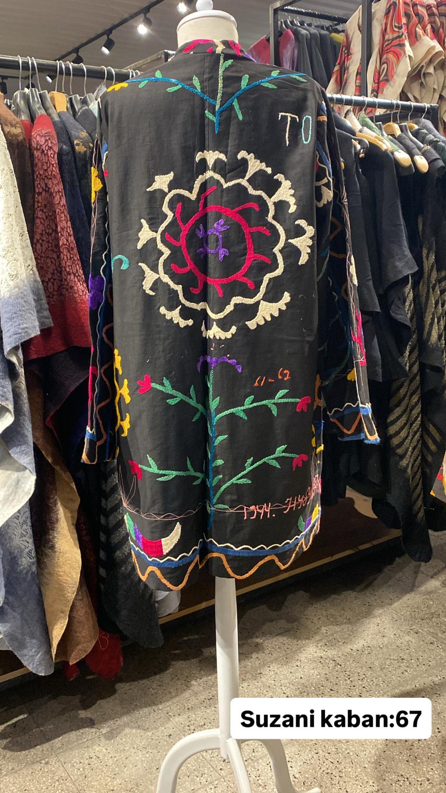 ÜRÜNLERİMİZ İPEK SUZANİDİR. ÜRÜNÜMÜZ ÖLÇÜLERİ OMUZ=40 BOY=83 KOL=59 EBATINDADIR. ÜRÜNÜMÜZ ÇİFT CEPLİDİR.ÜRÜNÜMÜZ ASTARLIDIR.EL YAPIMI ESKİ KUMAŞLARDAN ÜRETİLMİŞTİR ÜRÜNÜMÜZ KİŞİYE ÖZEL TASARIMDIR.