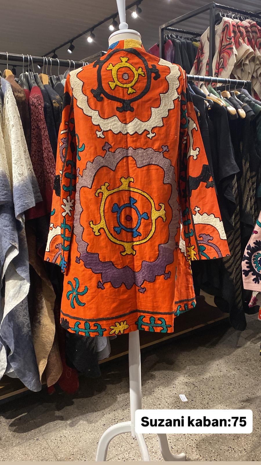 ÜRÜNLERİMİZ İPEK SUZANİDİR. ÜRÜNÜMÜZ ÖLÇÜLERİ OMUZ=40 BOY=83 KOL=59 EBATINDADIR. ÜRÜNÜMÜZ ÇİFT CEPLİDİR.ÜRÜNÜMÜZ ASTARLIDIR.EL YAPIMI ESKİ KUMAŞLARDAN ÜRETİLMİŞTİR ÜRÜNÜMÜZ KİŞİYE ÖZEL TASARIMDIR.
