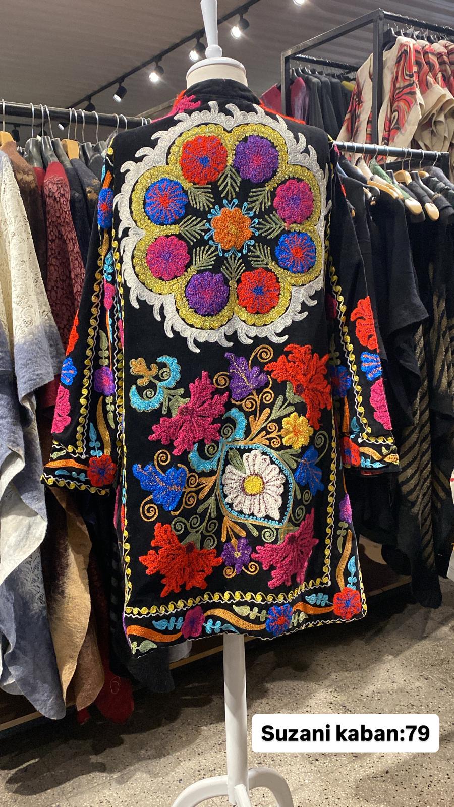 ÜRÜNLERİMİZ İPEK SUZANİDİR. ÜRÜNÜMÜZ ÖLÇÜLERİ OMUZ=40 BOY=83 KOL=59 EBATINDADIR. ÜRÜNÜMÜZ ÇİFT CEPLİDİR.ÜRÜNÜMÜZ ASTARLIDIR.EL YAPIMI ESKİ KUMAŞLARDAN ÜRETİLMİŞTİR ÜRÜNÜMÜZ KİŞİYE ÖZEL TASARIMDIR.