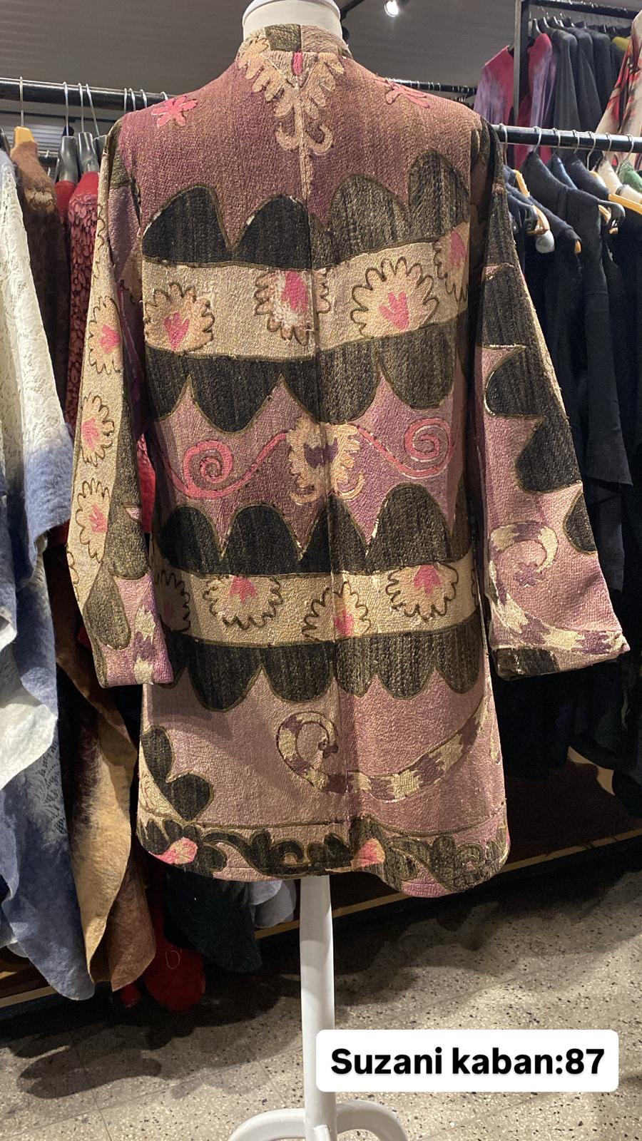 ÜRÜNLERİMİZ İPEK SUZANİDİR. ÜRÜNÜMÜZ ÖLÇÜLERİ OMUZ=40 BOY=83 KOL=59 EBATINDADIR. ÜRÜNÜMÜZ ÇİFT CEPLİDİR.ÜRÜNÜMÜZ ASTARLIDIR.EL YAPIMI ESKİ KUMAŞLARDAN ÜRETİLMİŞTİR ÜRÜNÜMÜZ KİŞİYE ÖZEL TASARIMDIR.