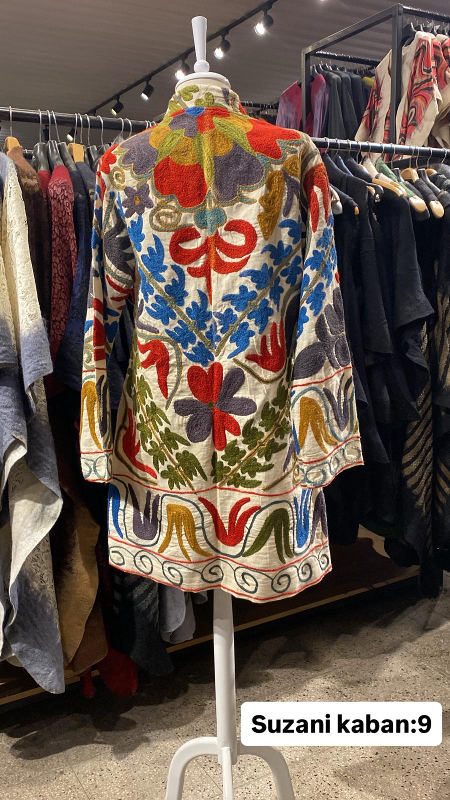 ÜRÜNLERİMİZ İPEK SUZANİDİR. ÜRÜNÜMÜZ ÖLÇÜLERİ OMUZ=40 BOY=83 KOL=59 EBATINDADIR. ÜRÜNÜMÜZ ÇİFT CEPLİDİR.ÜRÜNÜMÜZ ASTARLIDIR.EL YAPIMI ESKİ KUMAŞLARDAN ÜRETİLMİŞTİR ÜRÜNÜMÜZ KİŞİYE ÖZEL TASARIMDIR.