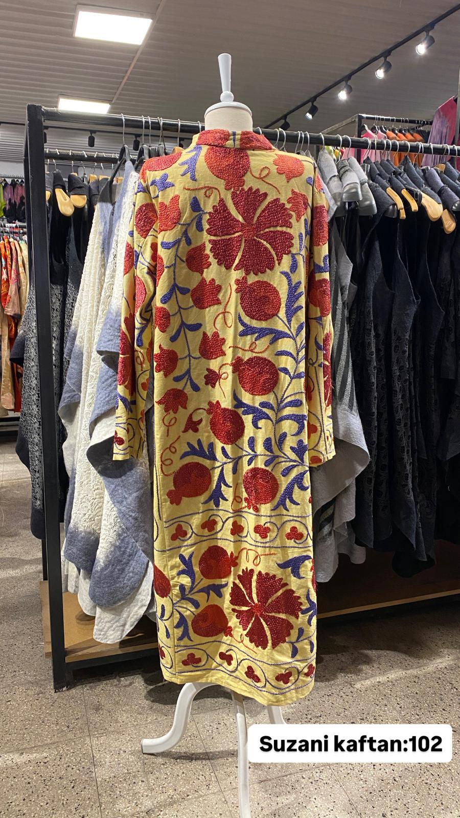 ÜRÜNLERİMİZ İPEK SUZANİDİR. ÜRÜNÜMÜZ ÖLÇÜLERİ OMUZ=35 BOY=120 KOL=59 EBATINDADIR. ÜRÜNÜMÜZ ASTARLIDIR. ÜRÜNÜMÜZ KUŞAKLIDIR.EL YAPIMI ESKİ KUMAŞLARDAN ÜRETİLMİŞTİR ÜRÜNÜMÜZ KİŞİYE ÖZEL TASARIMDIR.