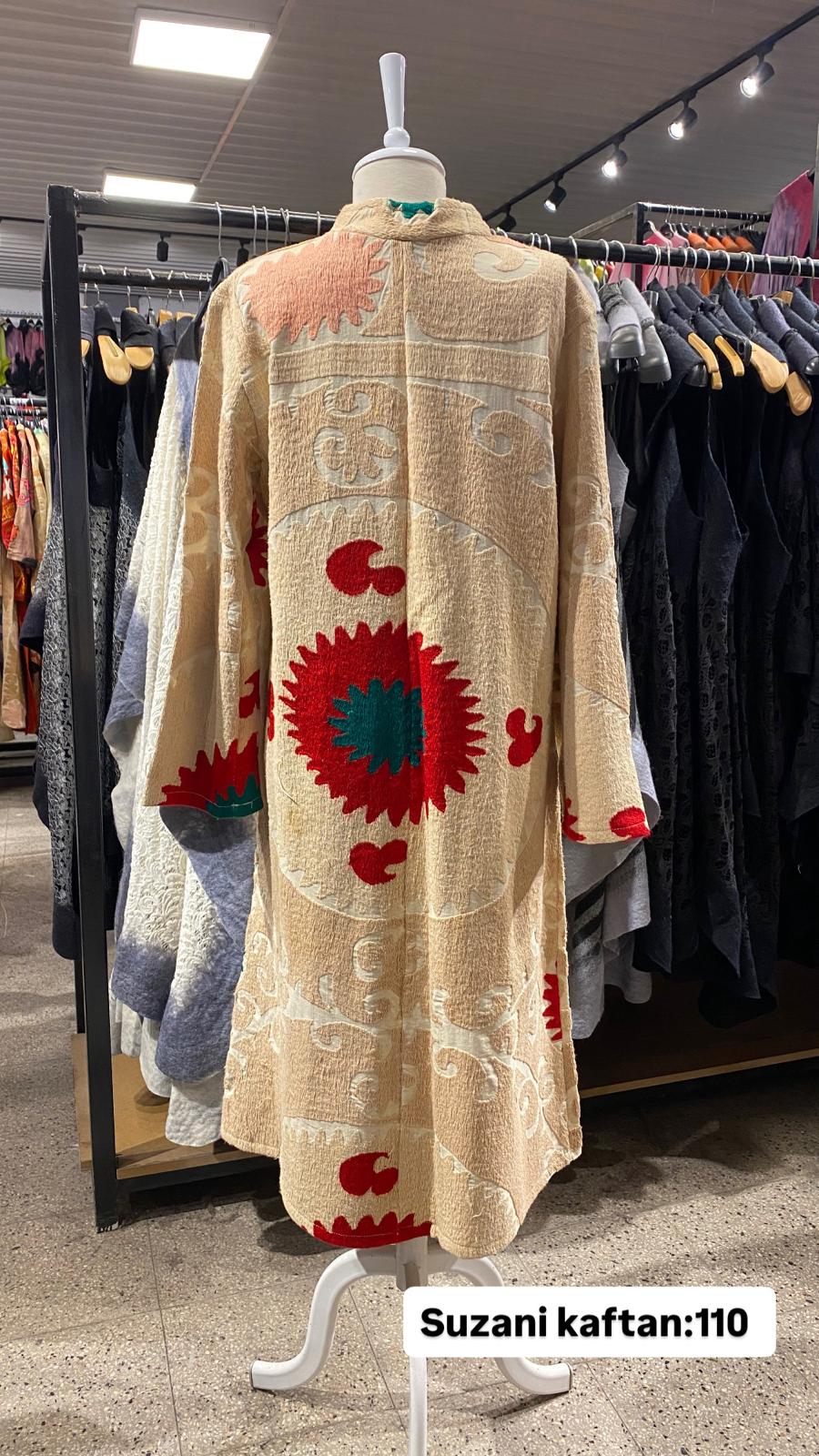 ÜRÜNLERİMİZ İPEK SUZANİDİR. ÜRÜNÜMÜZ ÖLÇÜLERİ OMUZ=35 BOY=120 KOL=59 EBATINDADIR. ÜRÜNÜMÜZ ASTARLIDIR. ÜRÜNÜMÜZ KUŞAKLIDIR.EL YAPIMI ESKİ KUMAŞLARDAN ÜRETİLMİŞTİR ÜRÜNÜMÜZ KİŞİYE ÖZEL TASARIMDIR.