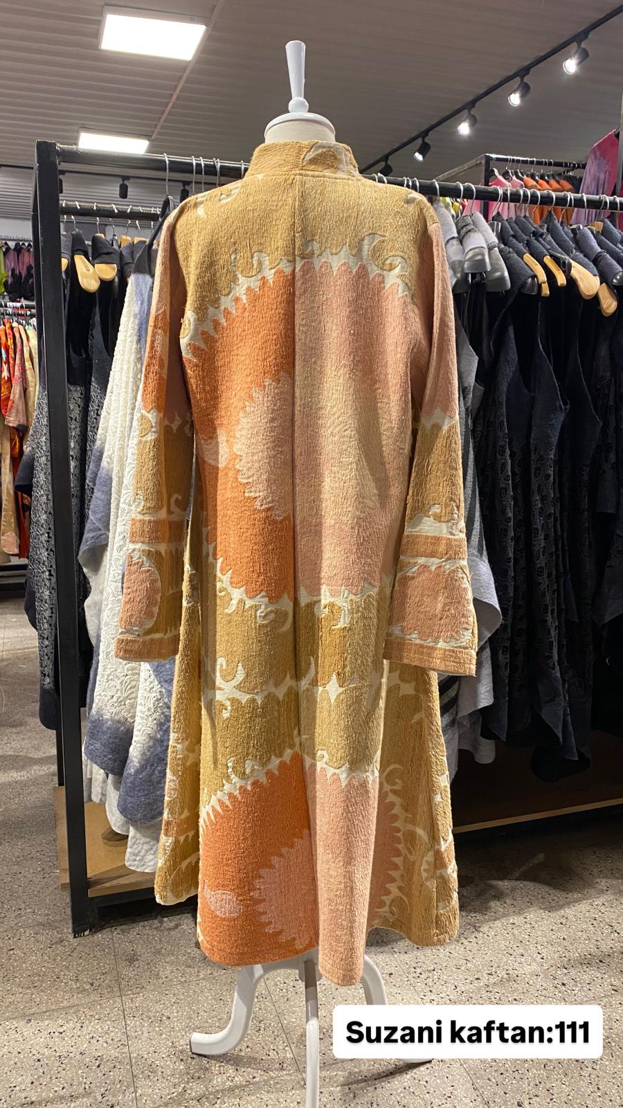 ÜRÜNLERİMİZ İPEK SUZANİDİR. ÜRÜNÜMÜZ ÖLÇÜLERİ OMUZ=35 BOY=120 KOL=59 EBATINDADIR. ÜRÜNÜMÜZ ASTARLIDIR. ÜRÜNÜMÜZ KUŞAKLIDIR.EL YAPIMI ESKİ KUMAŞLARDAN ÜRETİLMİŞTİR ÜRÜNÜMÜZ KİŞİYE ÖZEL TASARIMDIR.