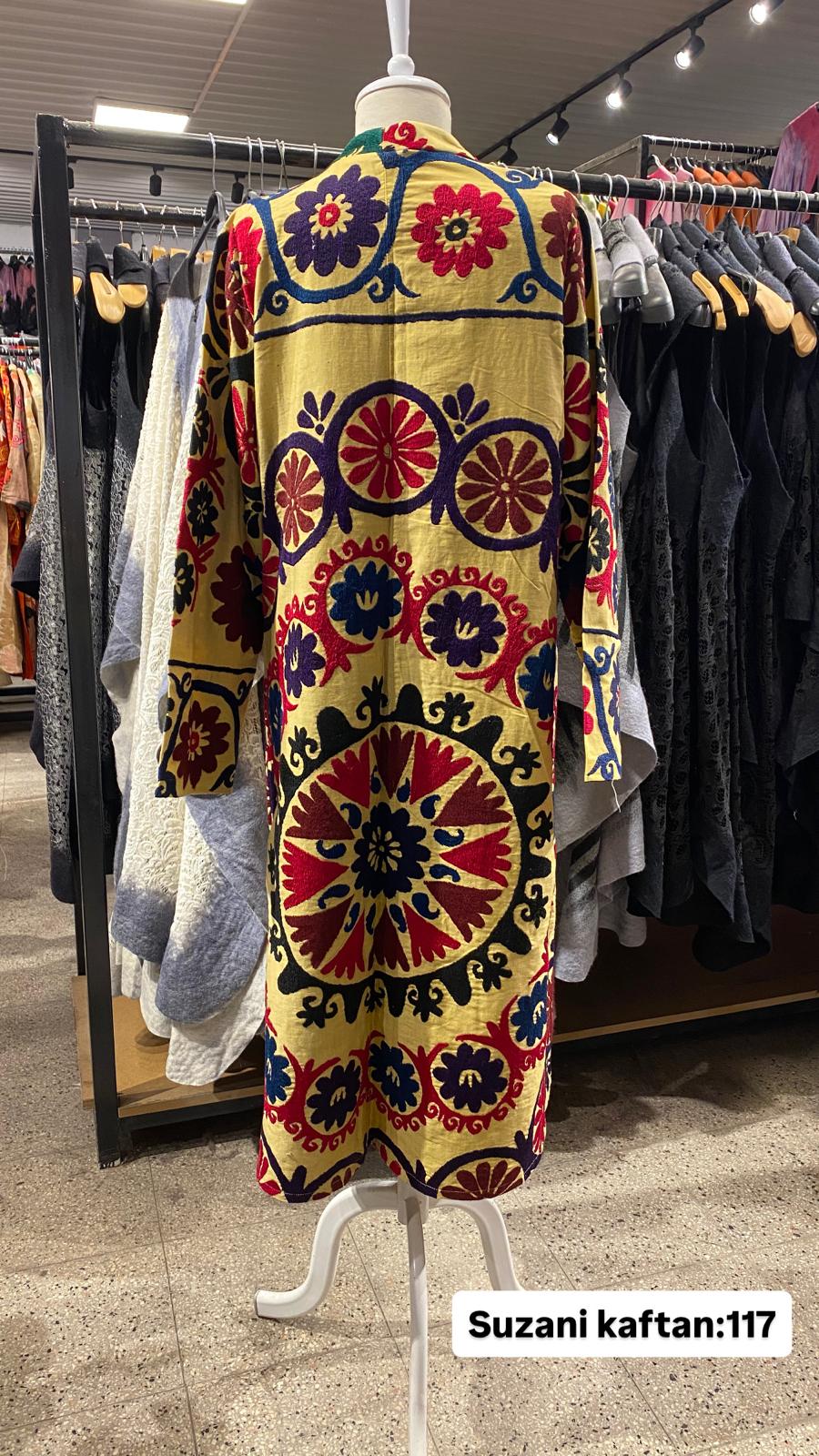 ÜRÜNLERİMİZ İPEK SUZANİDİR. ÜRÜNÜMÜZ ÖLÇÜLERİ OMUZ=35 BOY=120 KOL=59 EBATINDADIR. ÜRÜNÜMÜZ ASTARLIDIR. ÜRÜNÜMÜZ KUŞAKLIDIR.EL YAPIMI ESKİ KUMAŞLARDAN ÜRETİLMİŞTİR ÜRÜNÜMÜZ KİŞİYE ÖZEL TASARIMDIR.