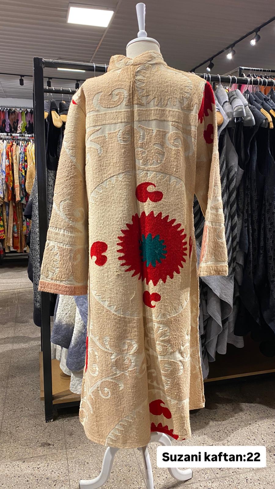 ÜRÜNLERİMİZ İPEK SUZANİDİR. ÜRÜNÜMÜZ ÖLÇÜLERİ OMUZ=35 BOY=120 KOL=59 EBATINDADIR. ÜRÜNÜMÜZ ASTARLIDIR. ÜRÜNÜMÜZ KUŞAKLIDIR.EL YAPIMI ESKİ KUMAŞLARDAN ÜRETİLMİŞTİR ÜRÜNÜMÜZ KİŞİYE ÖZEL TASARIMDIR.
