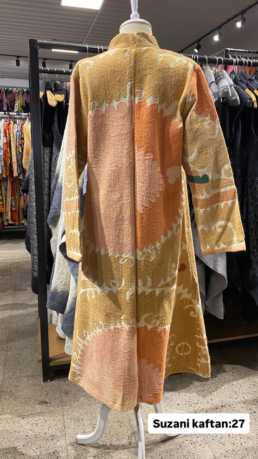 ÜRÜNLERİMİZ İPEK SUZANİDİR. ÜRÜNÜMÜZ ÖLÇÜLERİ OMUZ=35 BOY=120 KOL=59 EBATINDADIR. ÜRÜNÜMÜZ ASTARLIDIR. ÜRÜNÜMÜZ KUŞAKLIDIR.EL YAPIMI ESKİ KUMAŞLARDAN ÜRETİLMİŞTİR ÜRÜNÜMÜZ KİŞİYE ÖZEL TASARIMDIR.
