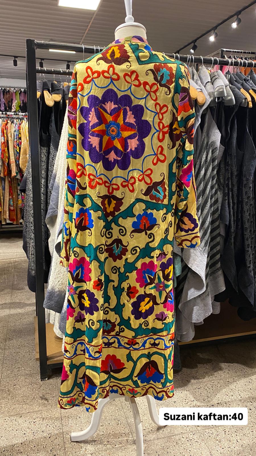 ÜRÜNLERİMİZ İPEK SUZANİDİR. ÜRÜNÜMÜZ ÖLÇÜLERİ OMUZ=35 BOY=120 KOL=59 EBATINDADIR. ÜRÜNÜMÜZ ASTARLIDIR. ÜRÜNÜMÜZ KUŞAKLIDIR.EL YAPIMI ESKİ KUMAŞLARDAN ÜRETİLMİŞTİR ÜRÜNÜMÜZ KİŞİYE ÖZEL TASARIMDIR.