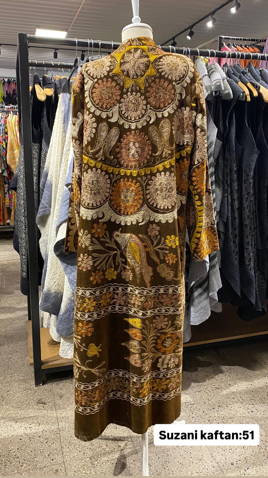 ÜRÜNLERİMİZ İPEK SUZANİDİR. ÜRÜNÜMÜZ ÖLÇÜLERİ OMUZ=35 BOY=120 KOL=59 EBATINDADIR. ÜRÜNÜMÜZ ASTARLIDIR. ÜRÜNÜMÜZ KUŞAKLIDIR.EL YAPIMI ESKİ KUMAŞLARDAN ÜRETİLMİŞTİR ÜRÜNÜMÜZ KİŞİYE ÖZEL TASARIMDIR.