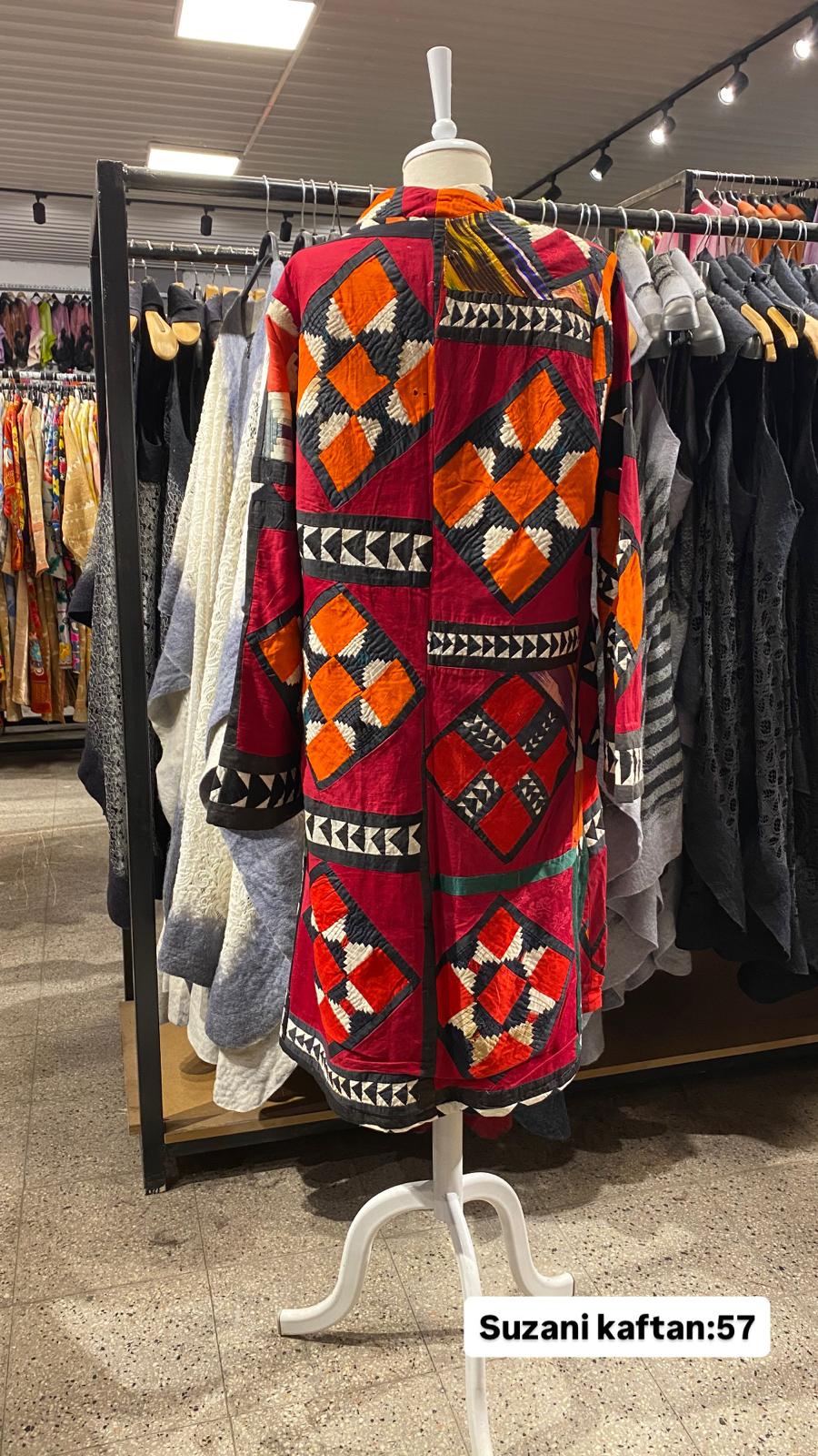 ÜRÜNLERİMİZ İPEK SUZANİDİR. ÜRÜNÜMÜZ ÖLÇÜLERİ OMUZ=42 BOY=113 KOL=55 EBATINDADIR.ÜRÜNÜMÜZ YIRTMAÇLIDIR. EL YAPIMI ESKİ KUMAŞLARDAN ÜRETİLMİŞTİR ÜRÜNÜMÜZ KİŞİYE ÖZEL TASARIMDIR.