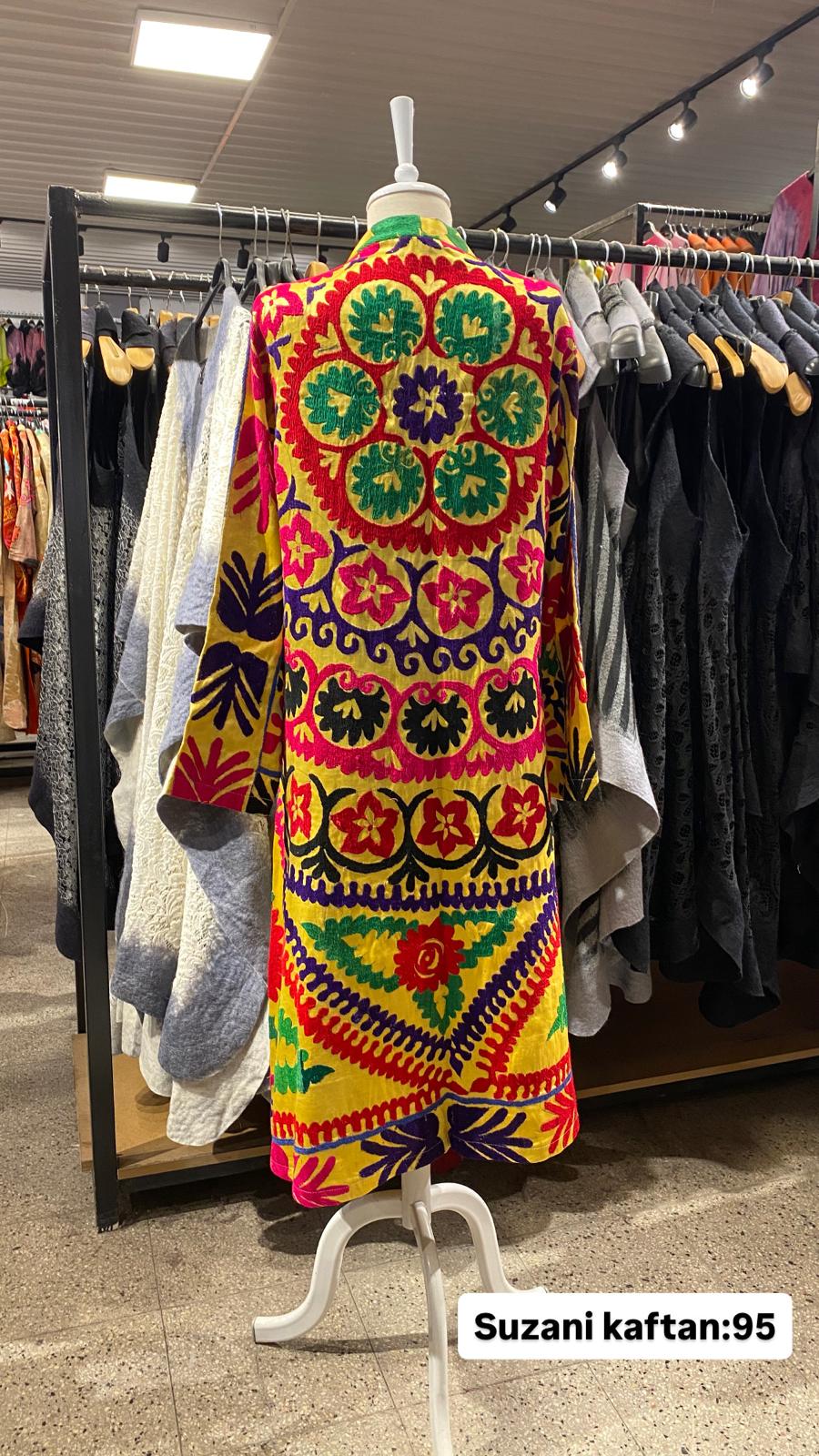 ÜRÜNLERİMİZ İPEK SUZANİDİR. ÜRÜNÜMÜZ ÖLÇÜLERİ OMUZ=35 BOY=120 KOL=59 EBATINDADIR. ÜRÜNÜMÜZ ASTARLIDIR. ÜRÜNÜMÜZ KUŞAKLIDIR.EL YAPIMI ESKİ KUMAŞLARDAN ÜRETİLMİŞTİR ÜRÜNÜMÜZ KİŞİYE ÖZEL TASARIMDIR.