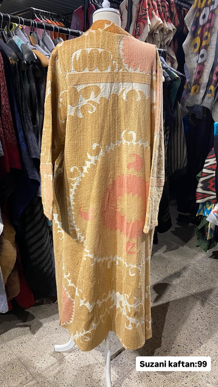 ÜRÜNLERİMİZ İPEK SUZANİDİR. ÜRÜNÜMÜZ ÖLÇÜLERİ OMUZ=35 BOY=120 KOL=59 EBATINDADIR. ÜRÜNÜMÜZ ASTARLIDIR. ÜRÜNÜMÜZ KUŞAKLIDIR.EL YAPIMI ESKİ KUMAŞLARDAN ÜRETİLMİŞTİR ÜRÜNÜMÜZ KİŞİYE ÖZEL TASARIMDIR.