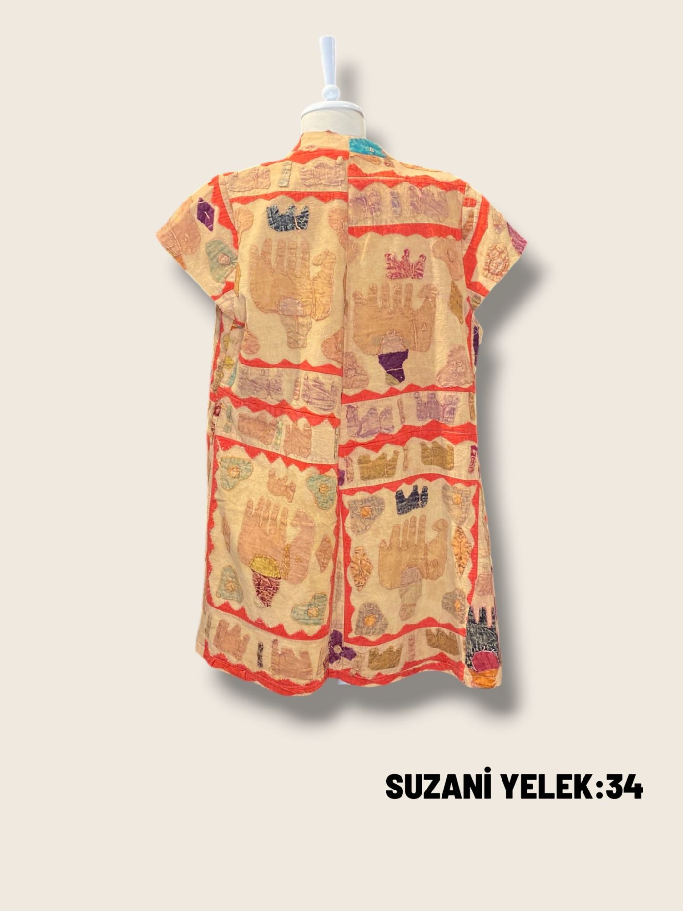 ÜRÜNLERİMİZ İPEK SUZANİDİR. ÜRÜNÜMÜZ ÖLÇÜLERİ OMUZ=36 BOY=56 GÖĞÜS=53 EBATINDADIR.ÜRÜNÜMÜZ ÇİFT CEPLİDİR. EL YAPIMI ESKİ KUMAŞLARDAN ÜRETİLMİŞTİR ÜRÜNÜMÜZ KİŞİYE ÖZEL TASARIMDIR.